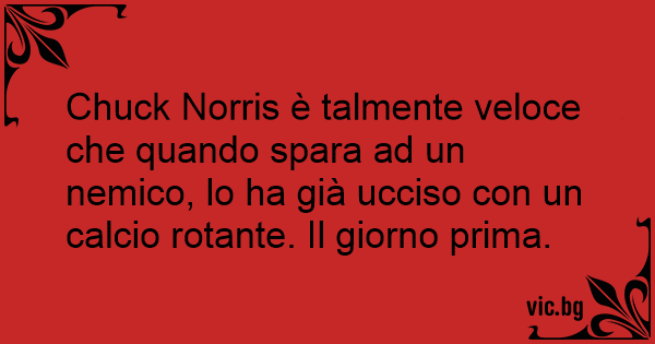 Chuck Norris è talmente veloce che quando spara ad un nemico, lo ha già ucciso соn un calcio rotante. Il giorno prima.
