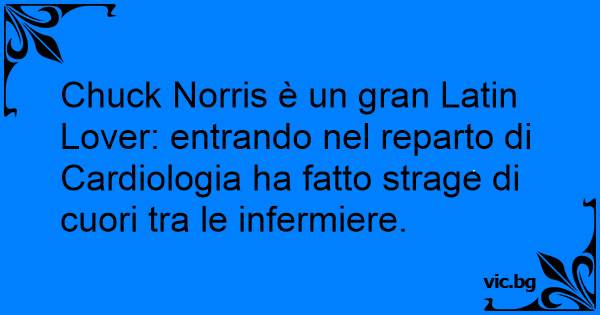 Chuck Norris è un gran Latin Lover: entrando nel reparto di Cardiologia ha fatto strage di cuori tra le infermiere.