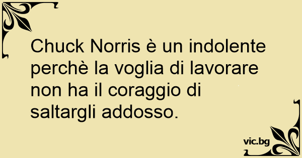 Chuck Norris è un indolente perchè la voglia di lavorare non ha il coraggio di saltargli addosso.