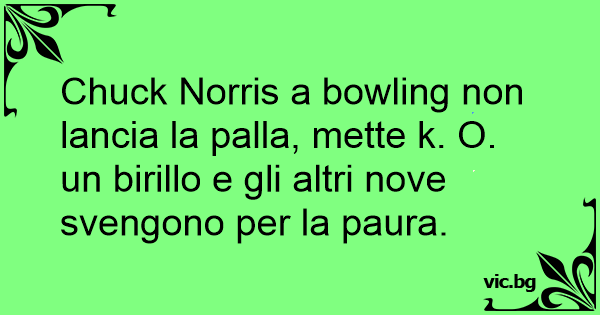 Chuck Norris a bowling non lancia la palla, mette k. O. un birillo e gli altri nove svengono per la paura.