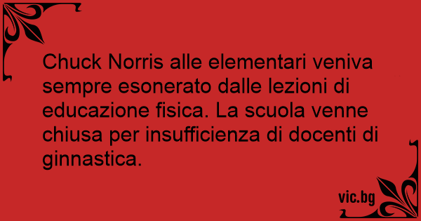 Chuck Norris alle elementari veniva sempre esonerato dalle lezioni di educazione fisica. La scuola venne chiusa per insufficienza di docenti di ginnastica.