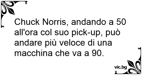Chuck Norris, andando a 50 all'ora col suo pick-up, può andare più veloce di una macchina che va a 90.