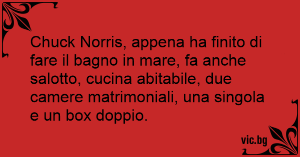 Chuck Norris, appena ha finito di fare il bagno in mare, fa anche salotto, cucina abitabile, due camere matrimoniali, una singola e un box doppio.