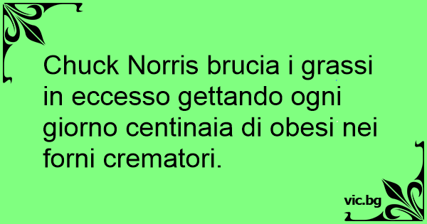 Chuck Norris brucia i grassi in eccesso gettando ogni giorno centinaia di obesi nei forni crematori.