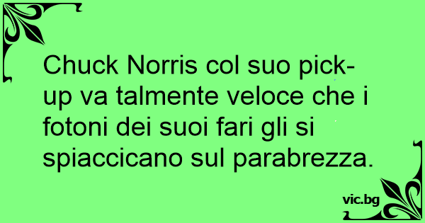 Chuck Norris col suo pick-up va talmente veloce che i fotoni dei suoi fari gli si spiaccicano sul parabrezza.