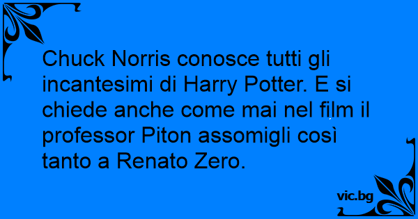 Chuck Norris conosce tutti gli incantesimi di Harry Potter. E si chiede anche come mai nel film il professor Piton assomigli così tanto a Renato Zero.