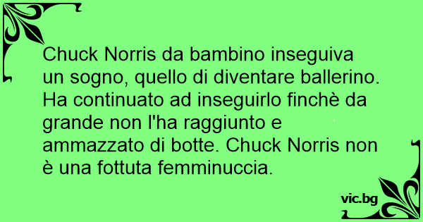 Chuck Norris da bambino inseguiva un sogno, quello di diventare ballerino. Ha continuato ad inseguirlo finchè da grande non l'ha raggiunto e ammazzato di botte. Chuck Norris non è una fоттuта fеммinuссiа.