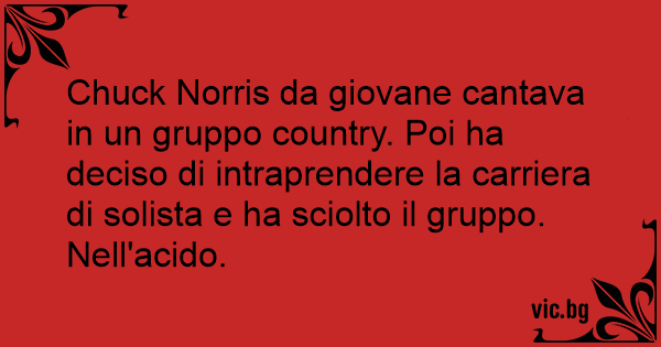 Chuck Norris da giovane cantava in un gruppo country. Poi ha deciso di intraprendere la carriera di solista e ha sciolto il gruppo. Nell'acido.
