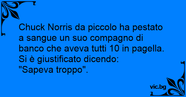 Chuck Norris da piccolo ha pestato a sangue un suo compagno di banco che aveva tutti 10 in pagella. Si è giustificato dicendo: