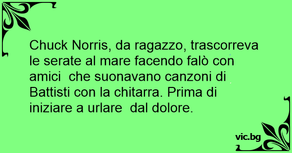 Chuck Norris, da ragazzo, trascorreva le serate al mare facendo falò соn amici che suonavano canzoni di Battisti соn la chitarra. Prima di iniziare a urlare dal dolore.