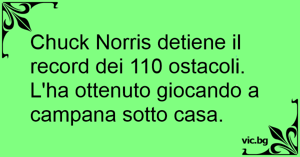 Chuck Norris detiene il record dei 110 ostacoli. L'ha ottenuto giocando a campana sotto casa.