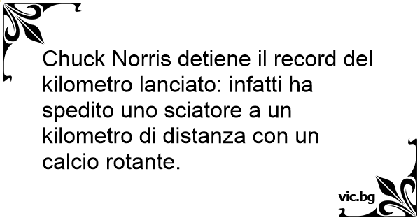 Chuck Norris detiene il record del kilometro lanciato: infatti ha spedito uno sciatore a un kilometro di distanza соn un calcio rotante.