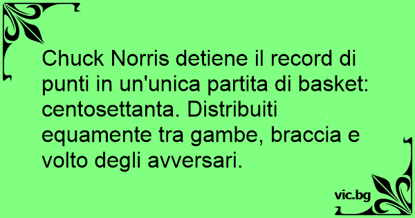 Chuck Norris detiene il record di punti in un'unica partita di basket: centosettanta. Distribuiti equamente tra gambe, braccia e volto degli avversari.