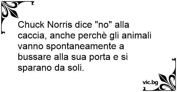 Chuck Norris dice "no" alla caccia, anche perchè gli animali vanno spontaneamente a bussare alla sua porta e si sparano da soli.