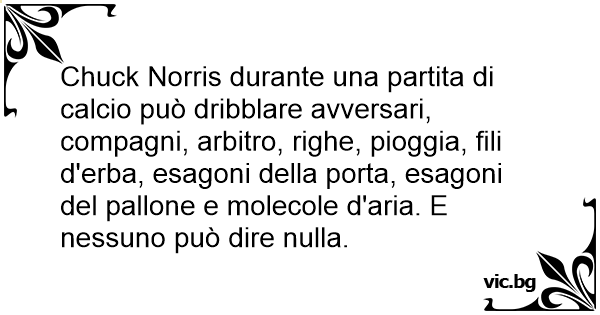 Chuck Norris durante una partita di calcio può dribblare avversari, compagni, arbitro, righe, pioggia, fili d'erba, esagoni della porta, esagoni del pallone e molecole d'aria. E nessuno può dire nulla.