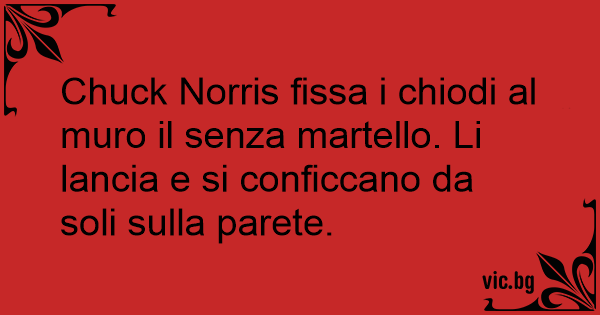 Chuck Norris fissa i chiodi al muro il senza martello. Li lancia e si conficcano da soli sulla parete.
