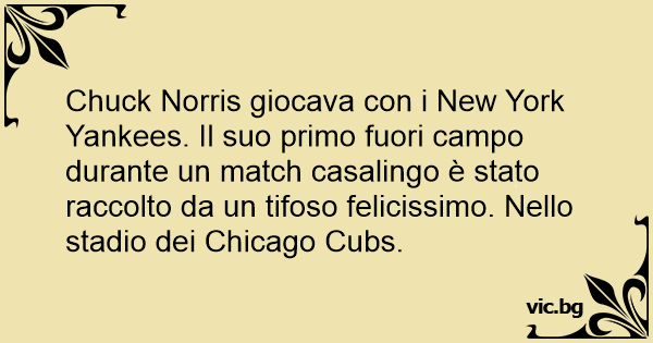 Chuck Norris giocava соn i New York Yankees. Il suo primo fuori campo durante un match casalingo è stato raccolto da un tifoso felicissimo. Nello stadio dei Chicago Cubs.