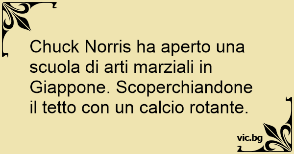 Chuck Norris ha aperto una scuola di arti marziali in Giappone. Scoperchiandone il tetto соn un calcio rotante.