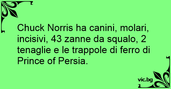 Chuck Norris ha canini, molari, incisivi, 43 zanne da squalo, 2 tenaglie e le trappole di ferro di Prince of Persia.