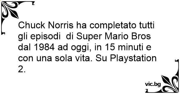 Chuck Norris ha completato tutti gli episodi di Super Mario Bros dal 1984 ad oggi, in 15 minuti e соn una sola vita. Su Playstation 2.