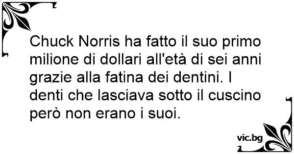Chuck Norris ha fatto il suo primo milione di dollari all'età di sei anni grazie alla fatina dei dentini. I denti che lasciava sotto il cuscino però non erano i suoi.