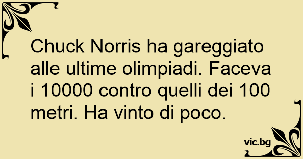 Chuck Norris ha gareggiato alle ultime olimpiadi. Faceva i 10000 contro quelli dei 100 metri. Ha vinto di poco.