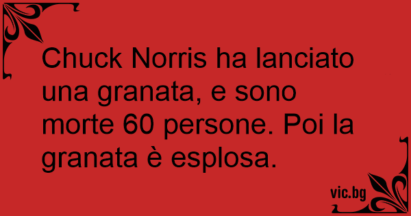 Chuck Norris ha lanciato una granata, e sono morte 60 persone. Poi la granata è esplosa.