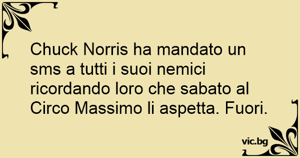 Chuck Norris ha mandato un sms a tutti i suoi nemici ricordando loro che sabato al Circo Massimo li aspetta. Fuori.