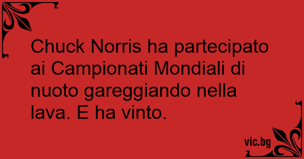 Chuck Norris ha partecipato ai Campionati Mondiali di nuoto gareggiando nella lava. E ha vinto.
