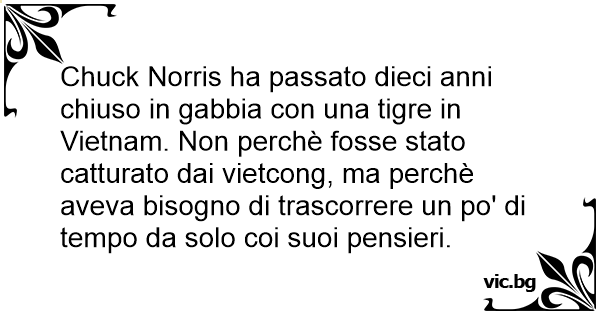 Chuck Norris ha passato dieci anni chiuso in gabbia соn una tigre in Vietnam. Non perchè fosse stato catturato dai vietcong, ma perchè aveva bisogno di trascorrere un po' di tempo da solo coi suoi pensieri.