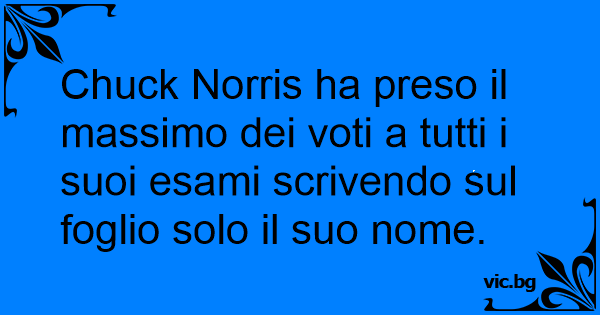 Chuck Norris ha preso il massimo dei voti a tutti i suoi esami scrivendo sul foglio solo il suo nome.