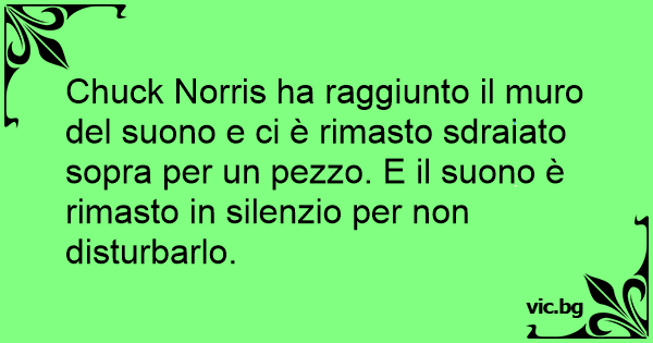 Chuck Norris ha raggiunto il muro del suono e ci è rimasto sdraiato sopra per un pezzo. E il suono è rimasto in silenzio per non disturbarlo.