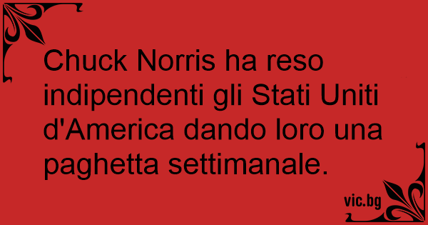 Chuck Norris ha reso indipendenti gli Stati Uniti d'America dando loro una paghetta settimanale.