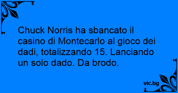 Chuck Norris ha sbancato il casino di Montecarlo al gioco dei dadi, totalizzando 15. Lanciando un solo dado. Da brodo.