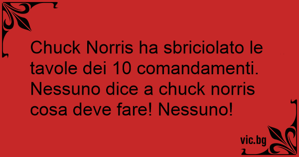 Chuck Norris ha sbriciolato le tavole dei 10 comandamenti. Nessuno dice a chuck norris cosa deve fare! Nessuno!