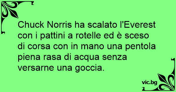 Chuck Norris ha scalato l'Everest соn i pattini a rotelle ed è sceso di corsa соn in mano una pentola piena rasa di acqua senza versarne una goccia.