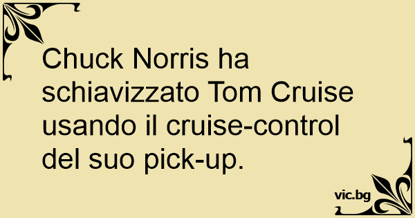 Chuck Norris ha schiavizzato Tom Cruise usando il cruise-control del suo pick-up.