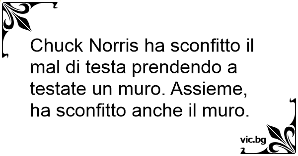 Chuck Norris ha sconfitto il mal di testa prendendo a testate un muro. Assieme, ha sconfitto anche il muro.