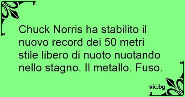 Chuck Norris ha stabilito il nuovo record dei 50 metri stile libero di nuoto nuotando nello stagno. Il metallo. Fuso.