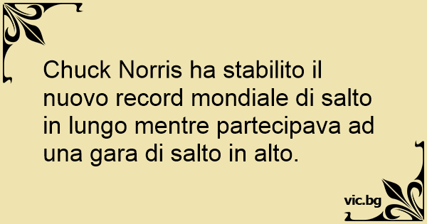 Chuck Norris ha stabilito il nuovo record mondiale di salto in lungo mentre partecipava ad una gara di salto in alto.