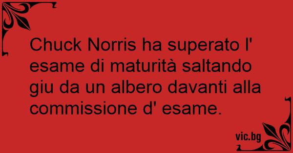 Chuck Norris ha superato l' esame di maturità saltando giu da un albero davanti alla commissione d' esame.