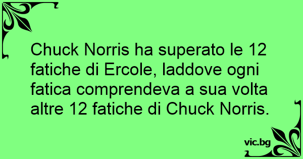 Chuck Norris ha superato le 12 fatiche di Ercole, laddove ogni fatica comprendeva a sua volta altre 12 fatiche di Chuck Norris.