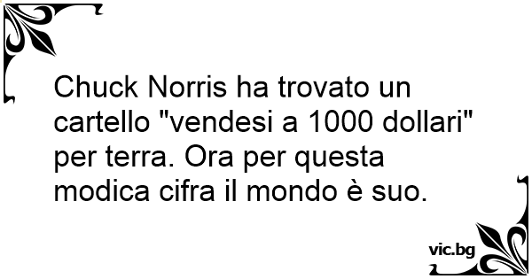 Chuck Norris ha trovato un cartello "vendesi a 1000 dollari" per terra. Ora per questa modica cifra il mondo è suo.