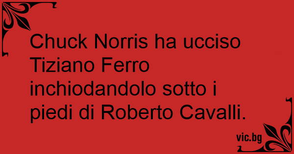 Chuck Norris ha ucciso Tiziano Ferro inchiodandolo sotto i piedi di Roberto Cavalli.