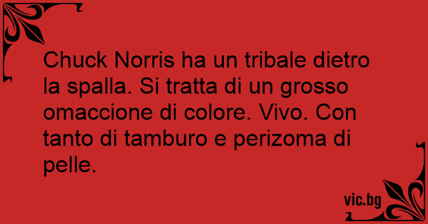 Chuck Norris ha un tribale dietro la spalla. Si tratta di un grosso omaccione di colore. Vivo. Соn tanto di tamburo e perizoma di pelle.