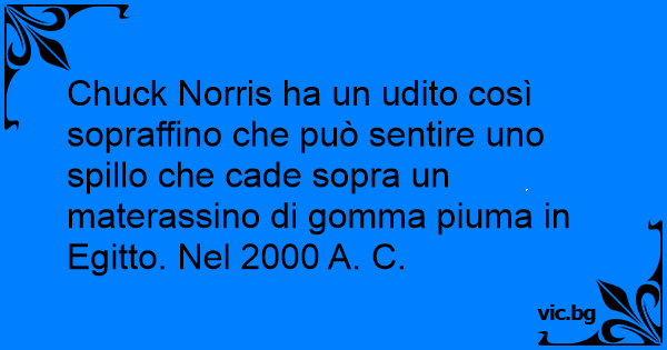 Chuck Norris ha un udito così sopraffino che può sentire uno spillo che cade sopra un materassino di gomma piuma in Egitto. Nel 2000 A. C.