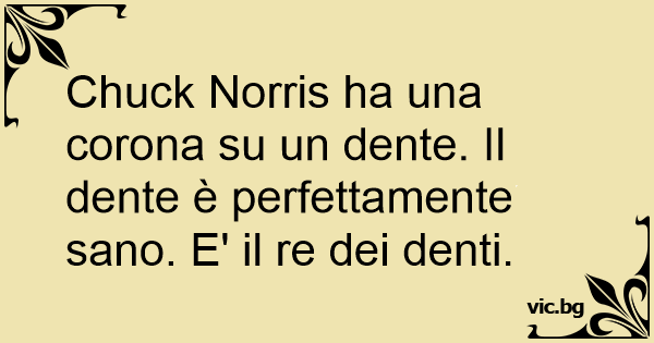Chuck Norris ha una corona su un dente. Il dente è perfettamente sano. E' il re dei denti.