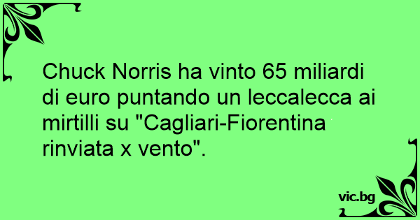 Chuck Norris ha vinto 65 miliardi di euro puntando un leccalecca ai mirtilli su "Cagliari-Fiorentina rinviata x vento".