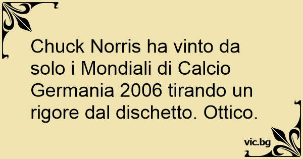 Chuck Norris ha vinto da solo i Mondiali di Calcio Germania 2006 tirando un rigore dal dischetto. Ottico.