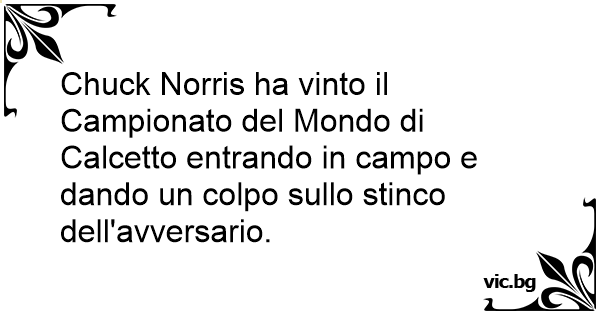 Chuck Norris ha vinto il Campionato del Mondo di Calcetto entrando in campo e dando un colpo sullo stinco dell'avversario.